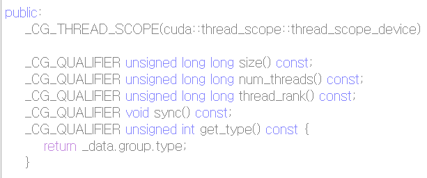 - unsigned thread_rank()을 통해 현재 그룹내의 Thread 인덱스